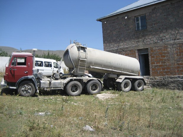 Tatevik showing two 750-liter water tanks