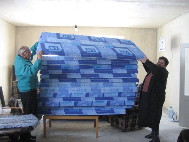 Tatevik's parents displaying 16 mattresses